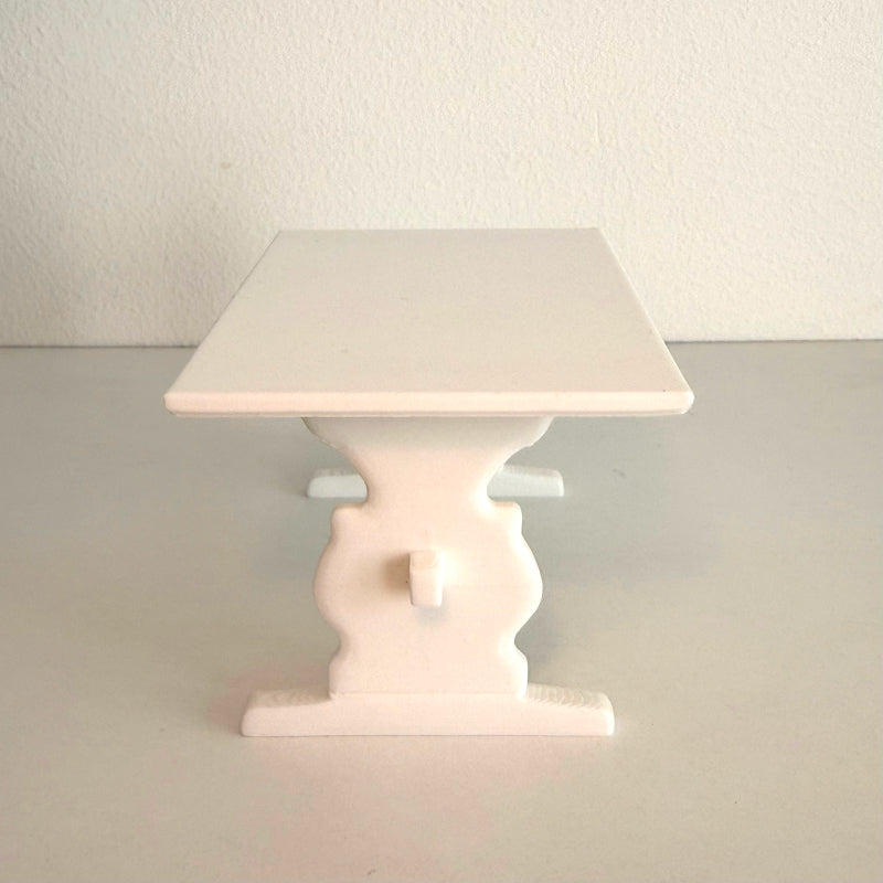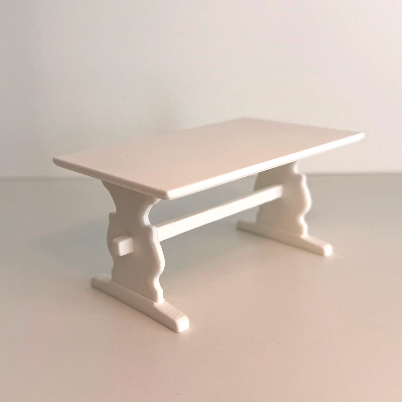 This table has a sturdy, rustic style that suits any miniature scene. Perfect as a centrepiece in a dollhouse country kitchen, or as part of a cosy dining room in a book nook or diorama.